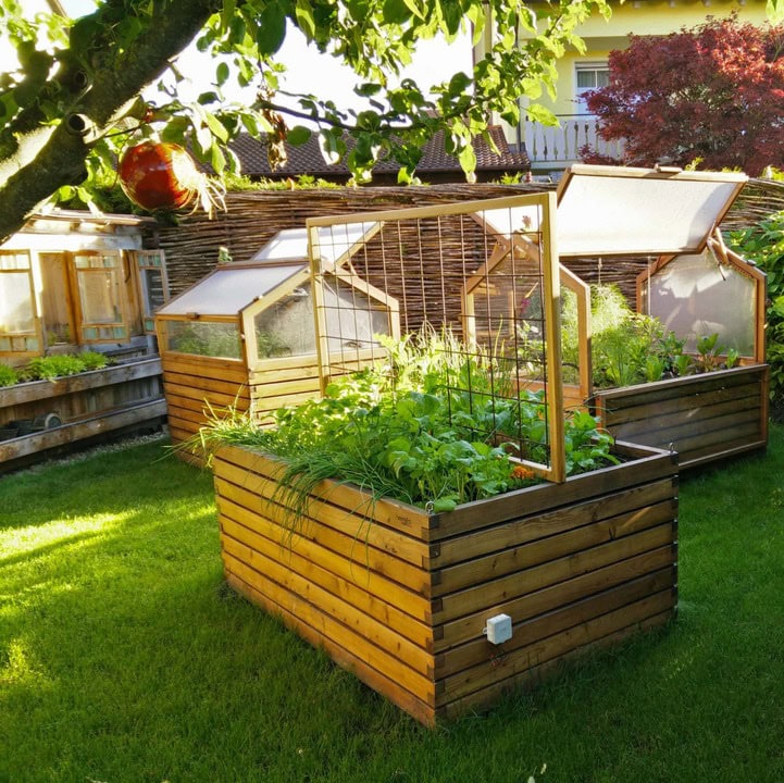 Das Holzhochbeet kann klassisch im Garten genutzt werden….