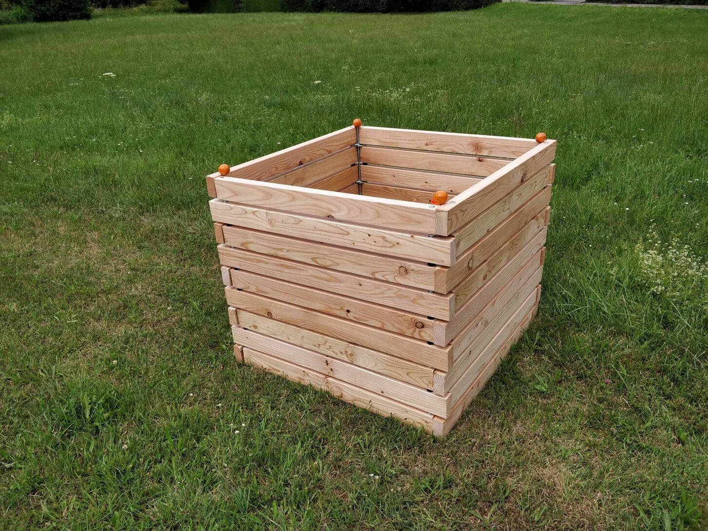 Die einzelnen Bohlen werden mit Gewindestangen zu Wandelementen verbunden, diese Wände lassen sich ineinanderstecken und mittels eines Metallstabes miteinander verketten. So entsteht ein stabil stehender Komposter, der durch Ziehen zweier Verbindungsstangen geöffnet werden kann.