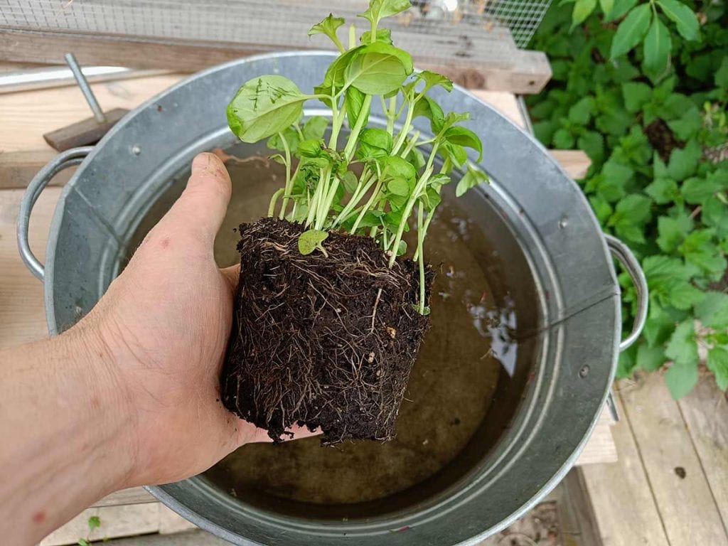 - Entfernen Sie den Topf vom Ballen.