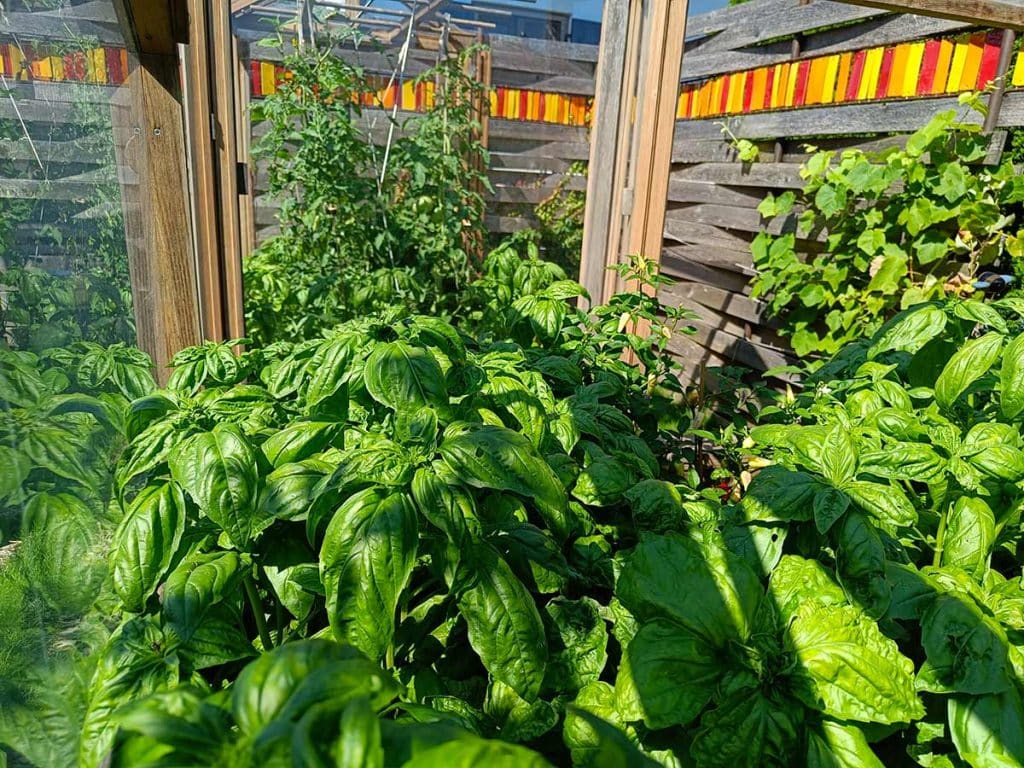 - Ein geschützter Standort, der Wind und starken Regen minimiert, ist ideal. Basilikum bevorzugt trockene Bedingungen.