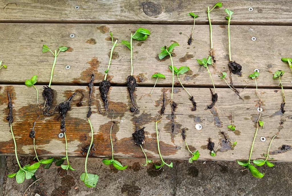 - Während der Arbeit sollten die Pflanzen auf einem feuchten Tuch liegen, um das Austrocknen der empfindlichen Wurzeln zu verhindern.